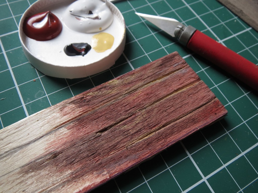 Devam edelim ve özet geçelim sandıktan tahtaları hazırladık kapımıza göre kestik biçtik eskittik ve boyalı su ile renklendirme yaptık .